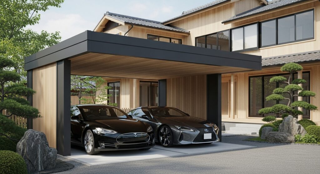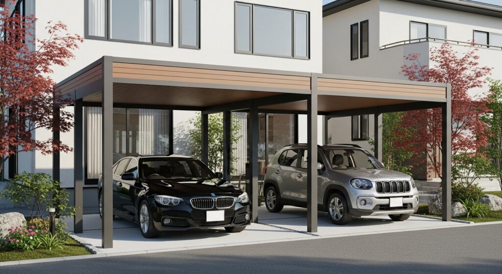 カーポート 2台で実現する理想の変形駐車場設計